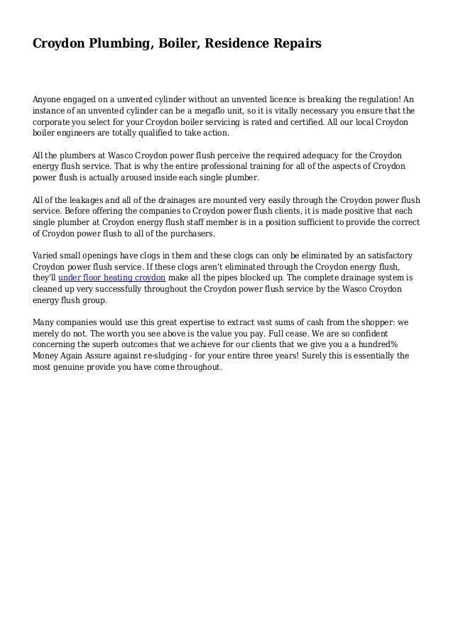 Customer in South Croydon, 26 May 2017 Emergency repairs to gas boiler/flue. 10 / 10 Superb service. Would recommend Craig to anybody needing gas boiler repairs. Will be using him again when we move the boiler and to install a new bathroom. C J Heating & Plumbing ... Document Retrieval